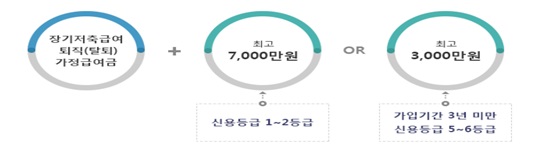 - 퇴직일 이전 대여 잔액이 300만 원 ~ 세후 장기저축 급여 퇴직급여금의 70% 이내인 회원
