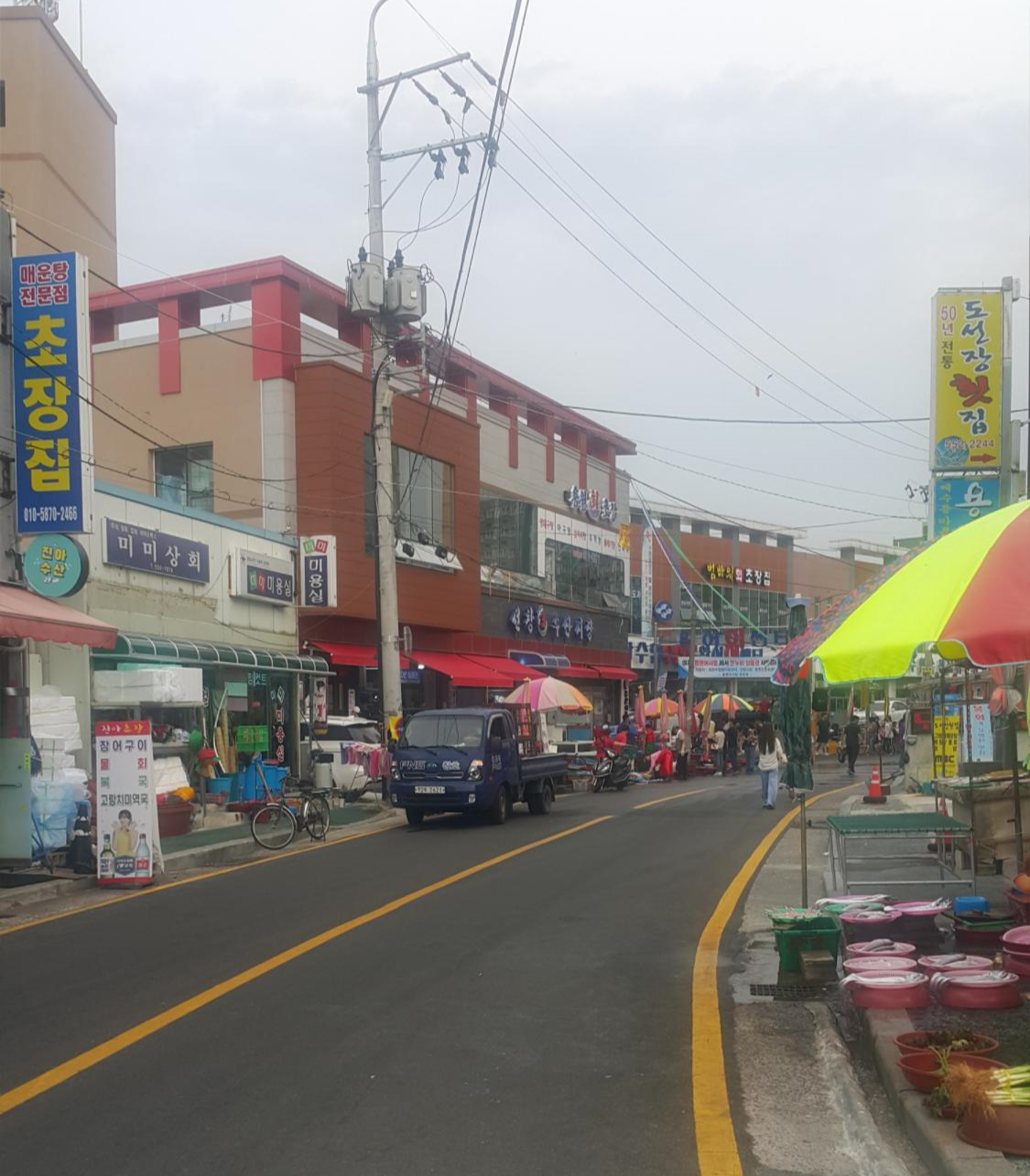 골목길로 조금 들어서면 재래시장이라고 쓰여있는 조개 골목이 들어서 있는데 안에 들어가 보시면 삼삼오오 조개를 구워 먹고 계신 분들이 있더라고요.