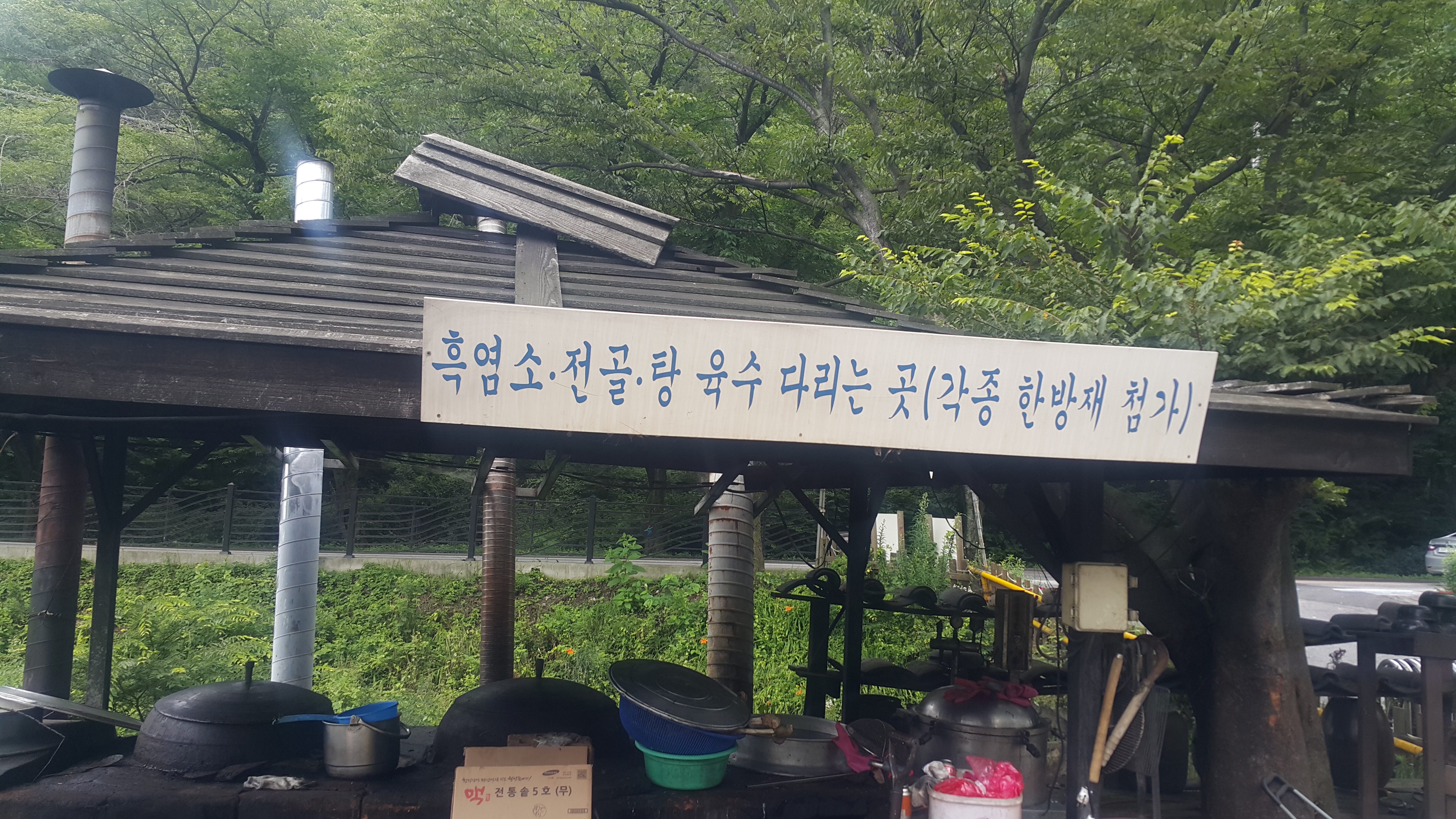 이렇게 외부에서 흑염소 전골 및 흑염소 탕을 한방재를 첨가하여 다리고 있는 모습이 이색적이었어요.