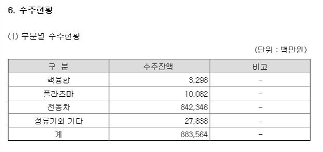 현재 시점에서 수주현황을 살펴보시겠습니다.