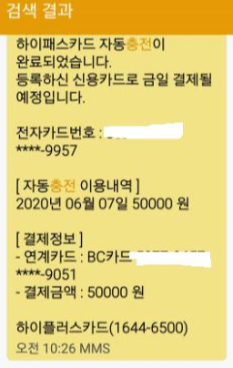 하이패스로 지나갈 때 카드 잔액이 1만원 이하가 되면