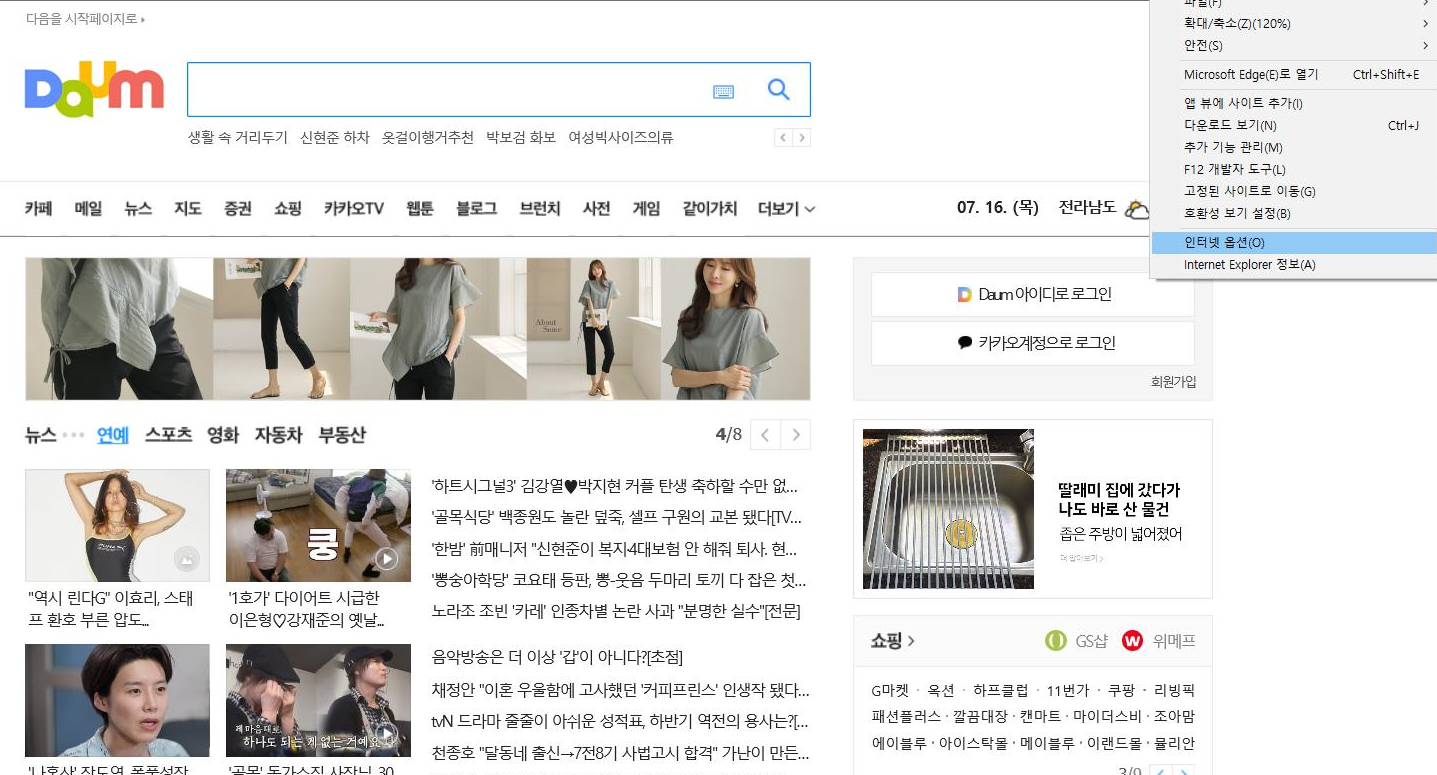 인터넷 옵션으로 들어가면 아래와 같은 창이 뜹니다.