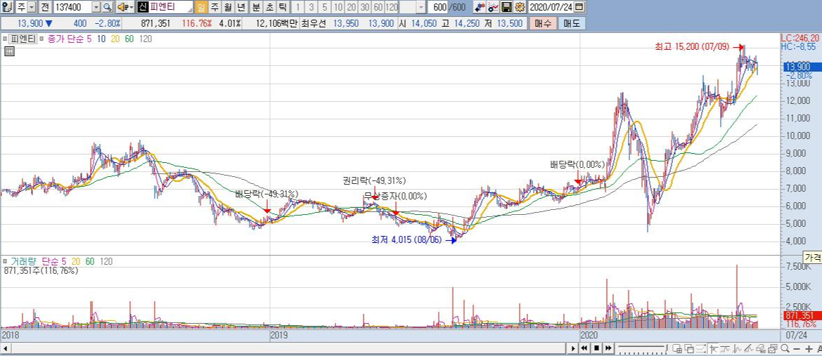 이번에는 피엔티의 차트를 보죠.