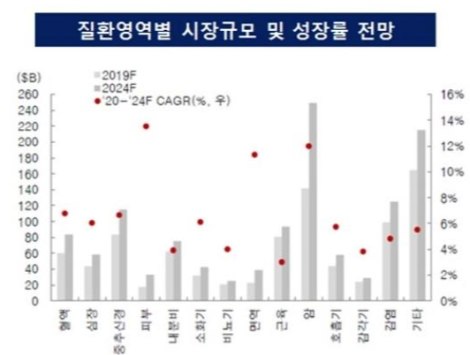 다른 질환에 비해 암 질환에 관한 시장규모는 향후 5년 안에 폭발적으로 성장할 가능성이 있다고 합니다.
