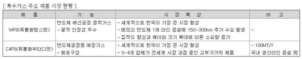 특히 반도체용 특수가스의 경우 생산량을 지속적으로 늘려가며 공정개선 등을 통해 국내외 시장에서 영향력을 발휘하는 상태입니다.