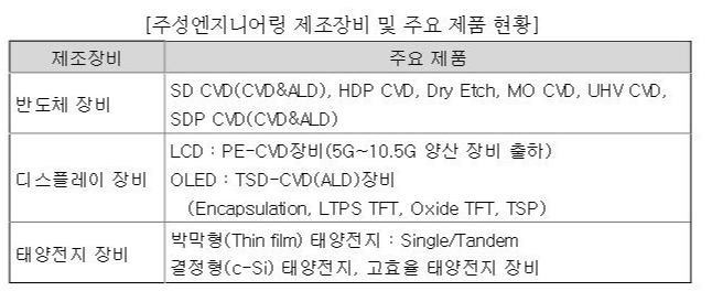 주성엔지니어링의 제조장비 및 주요 제품군은 다음과 같습니다.