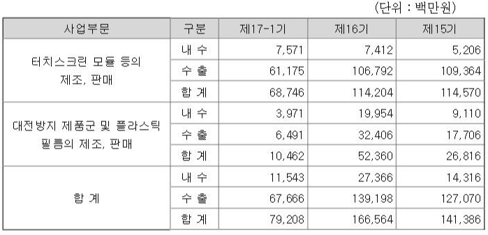 눈에 띄는 부분은 터치스크린 모듈 등의 제조, 판매 부문인데요.