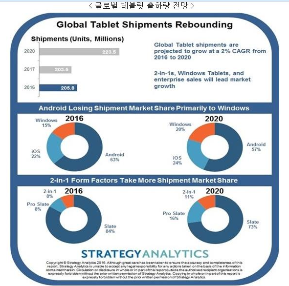세계시장에서의 태블릿 시장은 최근 몇 년간 연평균 2%의 성장속도를 보이고 있는 상황인데요.