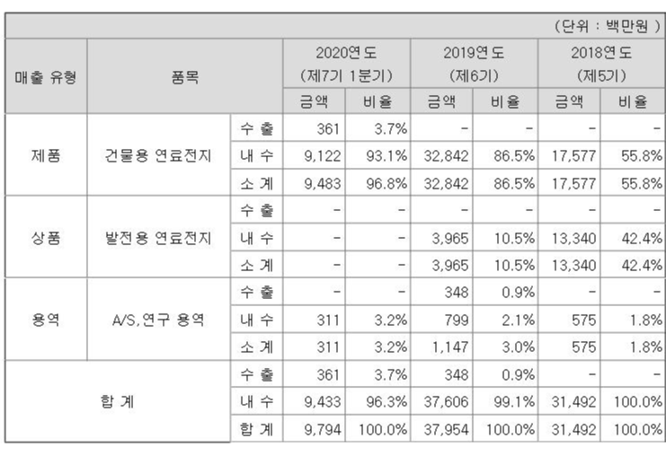 에스퓨얼셀이 어느 부문에서 많은 실적을 올리고 있는지 살펴봐야겠습니다.