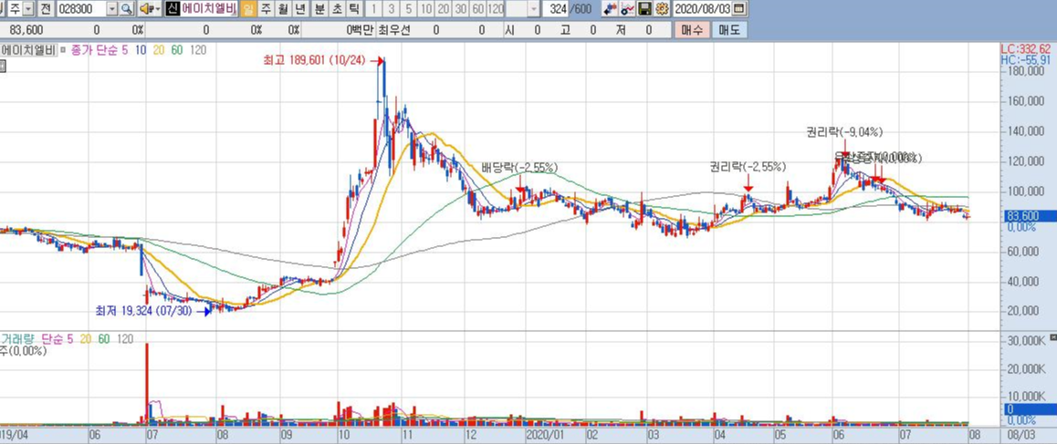 제가 요즘 포스팅해 드리는 기업들 마다 주가가 팡팡 뛰어서 기분이 좋지만 오늘 소개해드리는 에이치엘비의 주가는 약세를 면치 못하고 있네요.