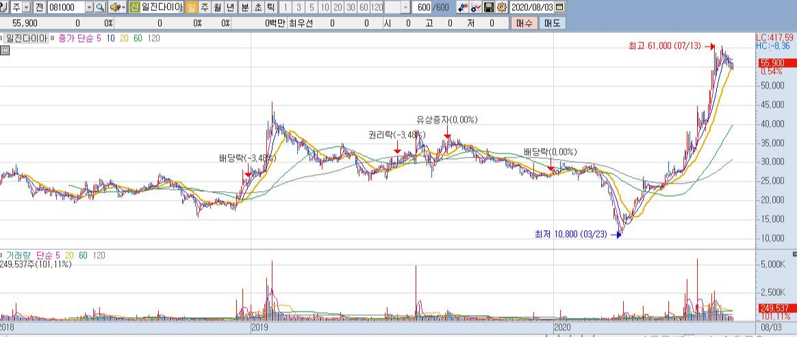 수소차에 관해 너무 부정적인 말씀만 드린 것 같지만 그렇다면 현재 일진다이아의 차트는 어떨까요?