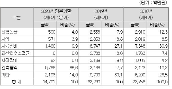 우정바이오는 설립 초기 바이오 기업이나 제약 관련 기업에 연구 소재 및 자원 공급을 하며 매출을 올렸던 기업입니다.
