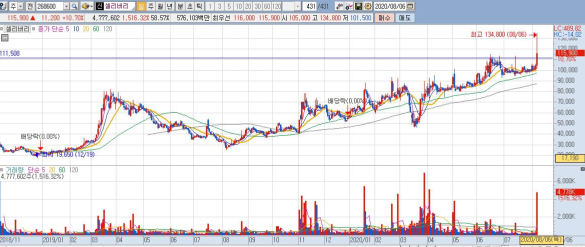 이러한 셀리버리가 오늘 갑작스러운 급등세의 흐름을 연출하였는데요.
