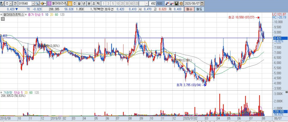 쎌마테라퓨틱스의 차트를 보시죠.