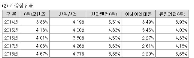 모헨즈의 시장점유율을 살펴보도록 하겠습니다.