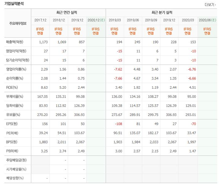 매년 10% 정도의 매출 감소세가 이어지고 있으며 올해 1분기 매출액은 처참할 정도네요.