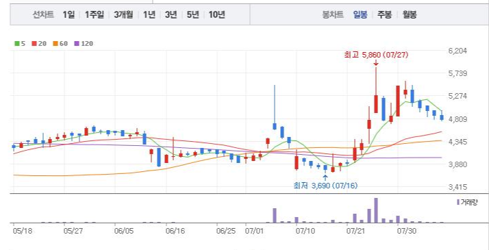 최근 경기불황으로 인한 건설산업 위축에 더해 계절적으로 비수기인 장마철까지 겹쳐지며 주가는 그렇게 좋지 못한 상황인데요.