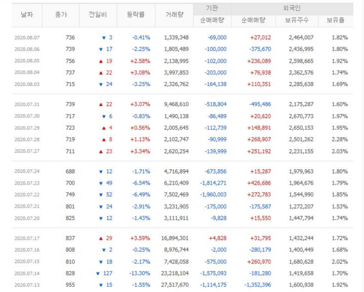 외국인 투자자의 매수세마저 없었더라면 현재 주가마저 장담할 수 없었겠죠.