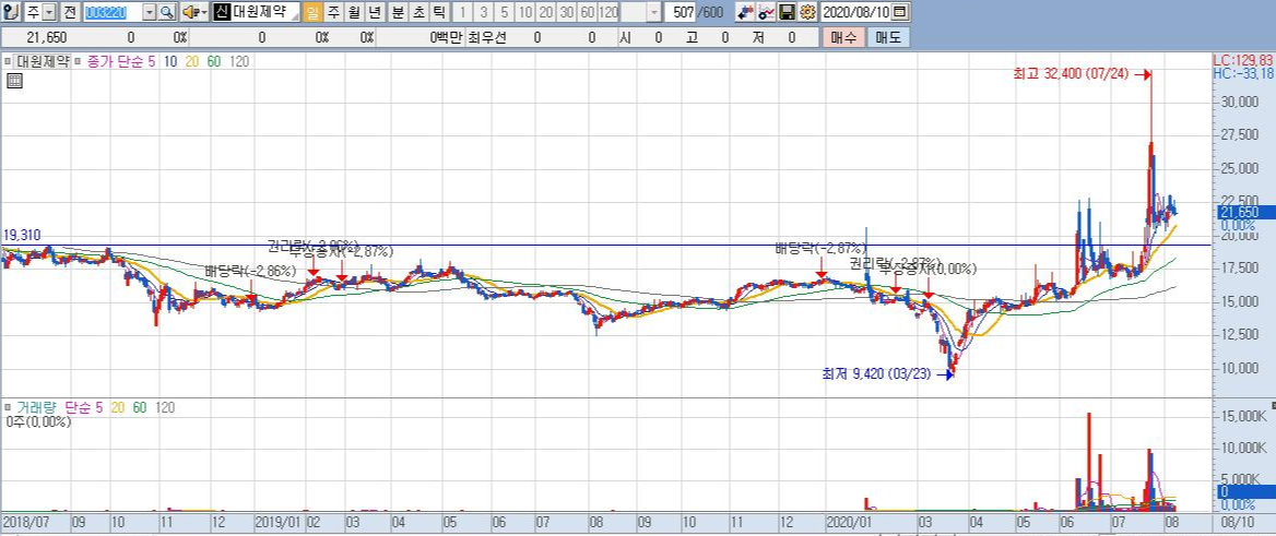 대원제약의 차트를 확인해보도록 하겠습니다.
