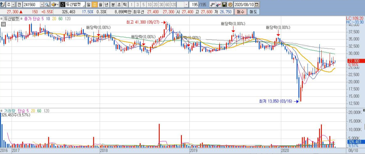 실제 두산인프라코어의 작년 매출인 8조원에서 60% 정도의 매출을 두산 밥캣이 올리고 있다고 하니 두산그룹의 핵심 카우가 어디인지 이해가 되실 겁니다.