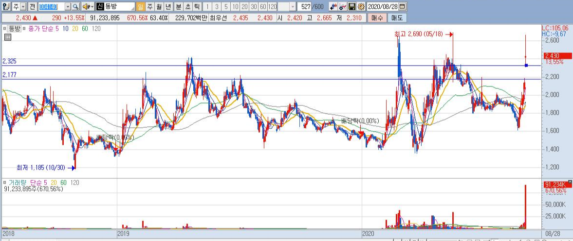 이 날의 거래가 동방 주가에 긍정적인 손 바뀜 현상이라면 거래량이 꾸준히 증가하며 상승흐름을 이어나갈 것으로 보이는데요.