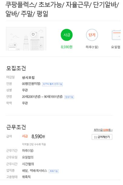 요즘은 쿠팡플렉스에서 단기 알바로도 많은 채용이 이뤄지고 있더라고요.