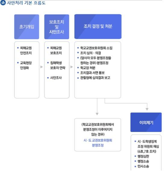 경남교육청의 교권침해 대응절차 방식인데 교육청마다 큰 차이는 없을 것으로 생각됩니다.