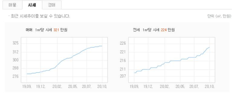 매매가는 321만원을 넘어섰고 전세가는 224만원에 육박하고 있습니다.