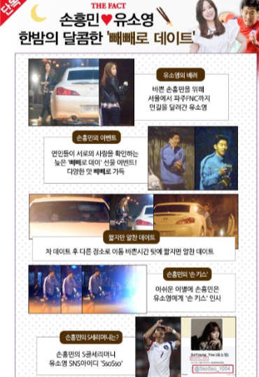 2015년 유소영과 기사가 나기 전인 1년 전에 민아와 손흥민의 기사가 터진 것인데요.