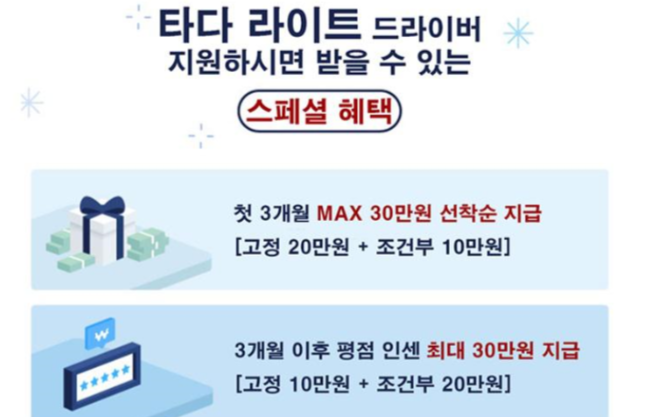 첫 3개월 동안 최대 30만원의 운전자 급여 혜택과 3개월 이후에도 최대의 인센티브를 받게 된다면 마찬가지로 30만원의 추가 수익을 기대할 수 있습니다.