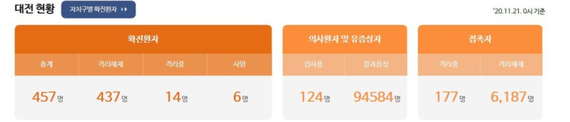 다음은 11월달의 대전 코로나 확진자 세부사항입니다.