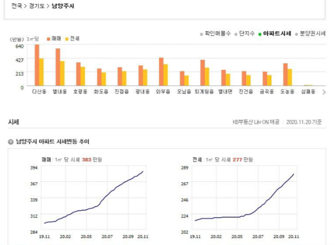 현재는 전세물량의 매물 잠김이 일어나면서 전세가 상승 뿐만 아니라 남양주시의 매매가 상승에 탄력을 받고 있는 상황입니다.