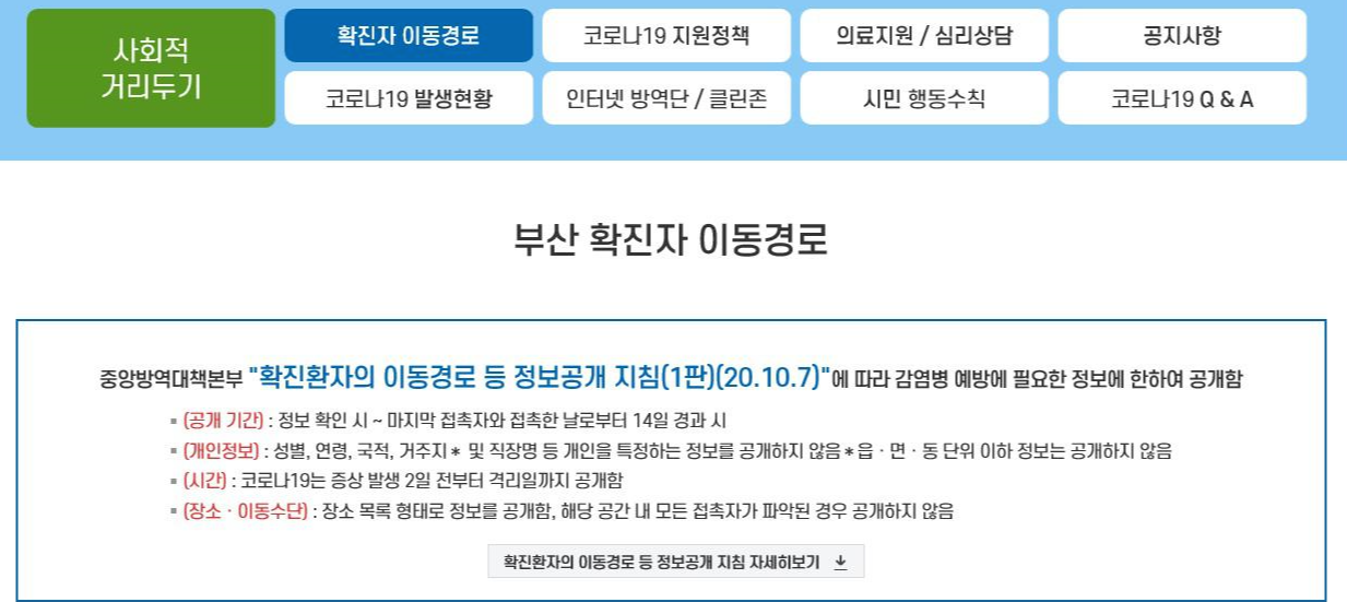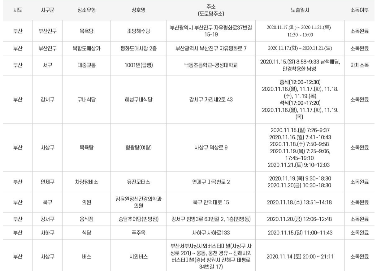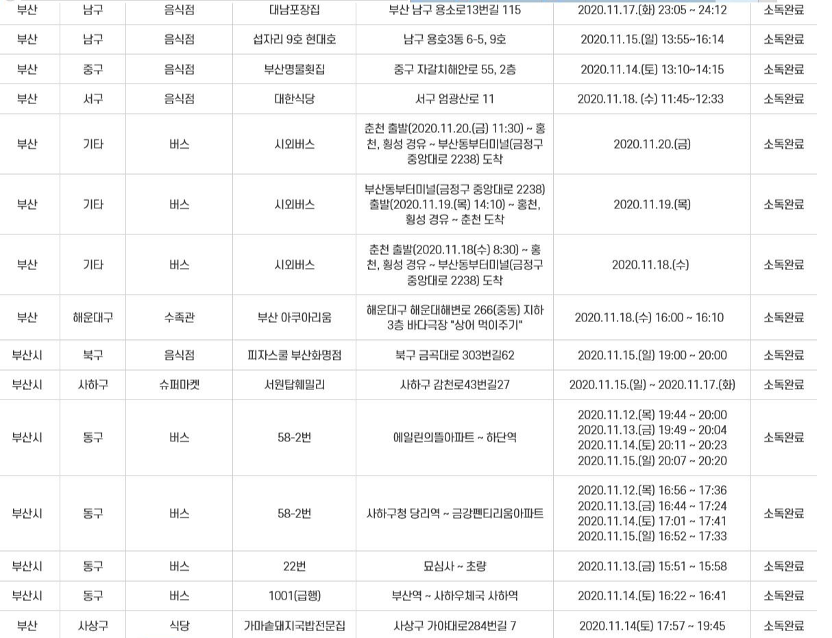 위에 공개된 장소는 일정기간 공지되고 향후 접촉자가 모두 파악되고 밀첩접촉자의 경우 정밀 검진을 하게 되면 삭제된다고 합니다.