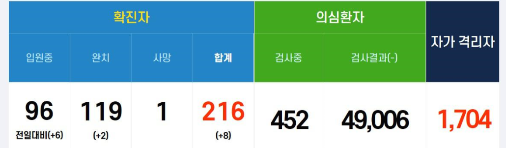 현재 의심환자 숫자만 452명이고 검사중 이라고 하니 안정세로 들어설지 조금 더 상황을 지켜봐야 할 것 같습니다.