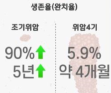 그러나 이미 몸의 각 장기에 전이가 심각하게 이뤄진 상태라면 5년 생존율의 수치가 많이 떨어져 6%를 밑도는 수치를 보인다고 합니다.