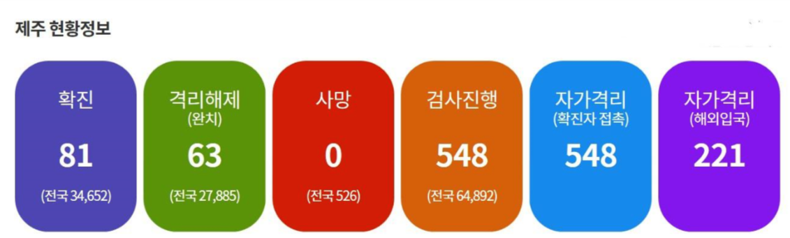 제주의 확진자 숫자는 오늘 1명이 새롭게 추가되었습니다.
