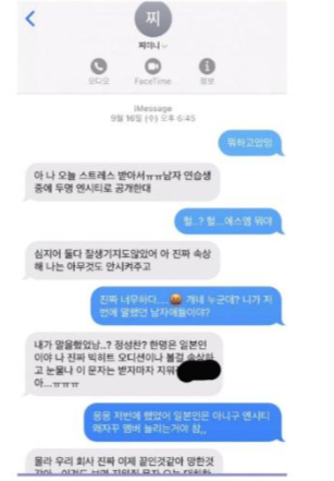 | 카리나는 연습생 시절에 엑소 멤버인 카이와 NCT, 방탄소년단의 외모에 대해 비하 발언을 하였다라는 말들이 있더라고요. 얼굴이 못생겼다라든지 얼굴에 손을 대고 수술한 것처럼 보인다 라는 그녀의 메시지로 보이는 문자가 공개되며 논란을 불러 일으키기도 했고요. |
