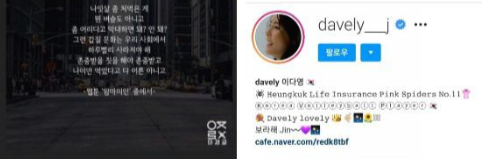 대상을 지칭하지는 않았지만 인스타의 메시지로 보아 상대가 그녀보다는 나이가 많은 선배라는 게 특정된 상황입니다.