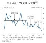 마지막으로 한국은행에서 발표한 근원물가 상승률 그래프도 보여드리겠습니다.