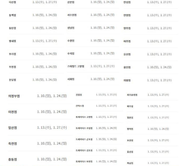 기타 다른 지방의 이마트 쉬는 날은 이마트 홈페이지에서 확인 가능합니다.