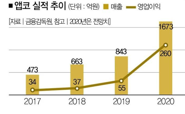 앱코의 실적추이를 확인해보도록 하겠습니다.