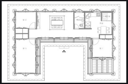 건축 구조형태는 경량형의 목구조로 단층이며 현관, 거실, 주방, 방 2개, 화장실 1개 외에 집에 정리해둘 물건이 많아 다용도실을 추가로 계획하고 있습니다.
