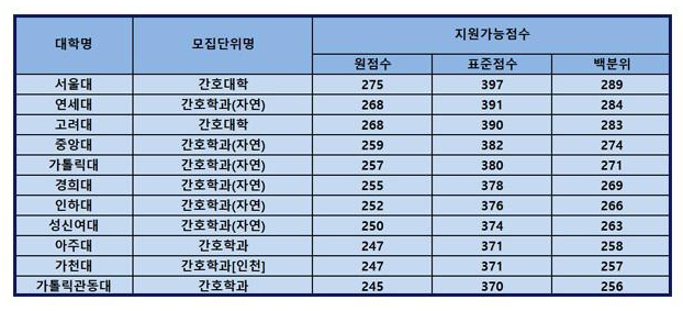 마지막으로 전국 간호학과 순위에 대해 정보를 전해주겠습니다.