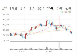 일봉차트를 살펴보니 1월 11일 윗꼬리를 상당히 크게 달고 약 일주일간 하락 중에 있습니다.