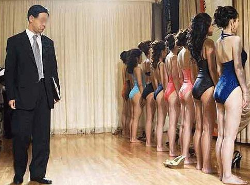 미스코리아 심사위원이 전문성을 갖고 매의 눈으로 미스코리아의 수영복 심사를 보고 있는 사진이다.