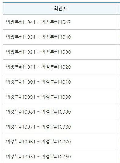 현재 의정부에서는 11041번부터 11047번까지의 확진자가 발생한 상태입니다.