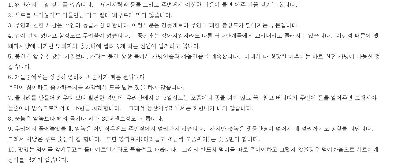 풍산개를 기르시려는 분들에게는 많은 도움이 될 거라고 생각합니다.