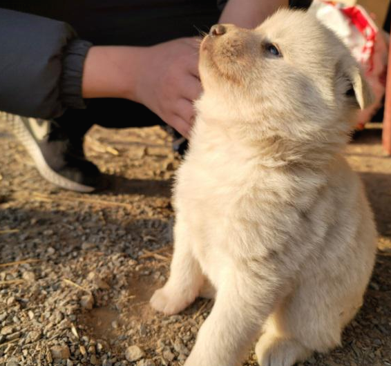첫 번째 풍산개는 수컷이고 이제 고작 2개월 된 강아지입니다.