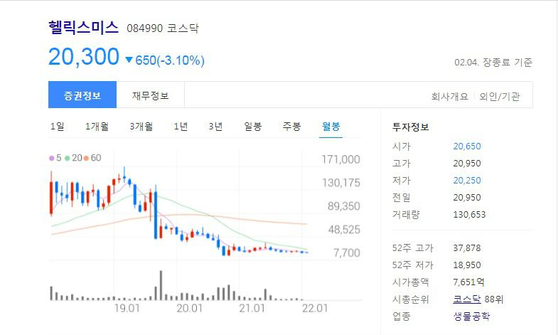 첫 번째 종목은 헬릭스미스입니다.