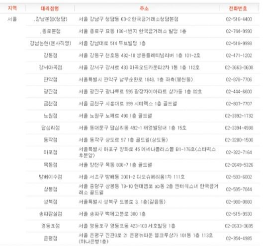 한국 금 거래소의 다양한 지점에 직접 확인해보시고